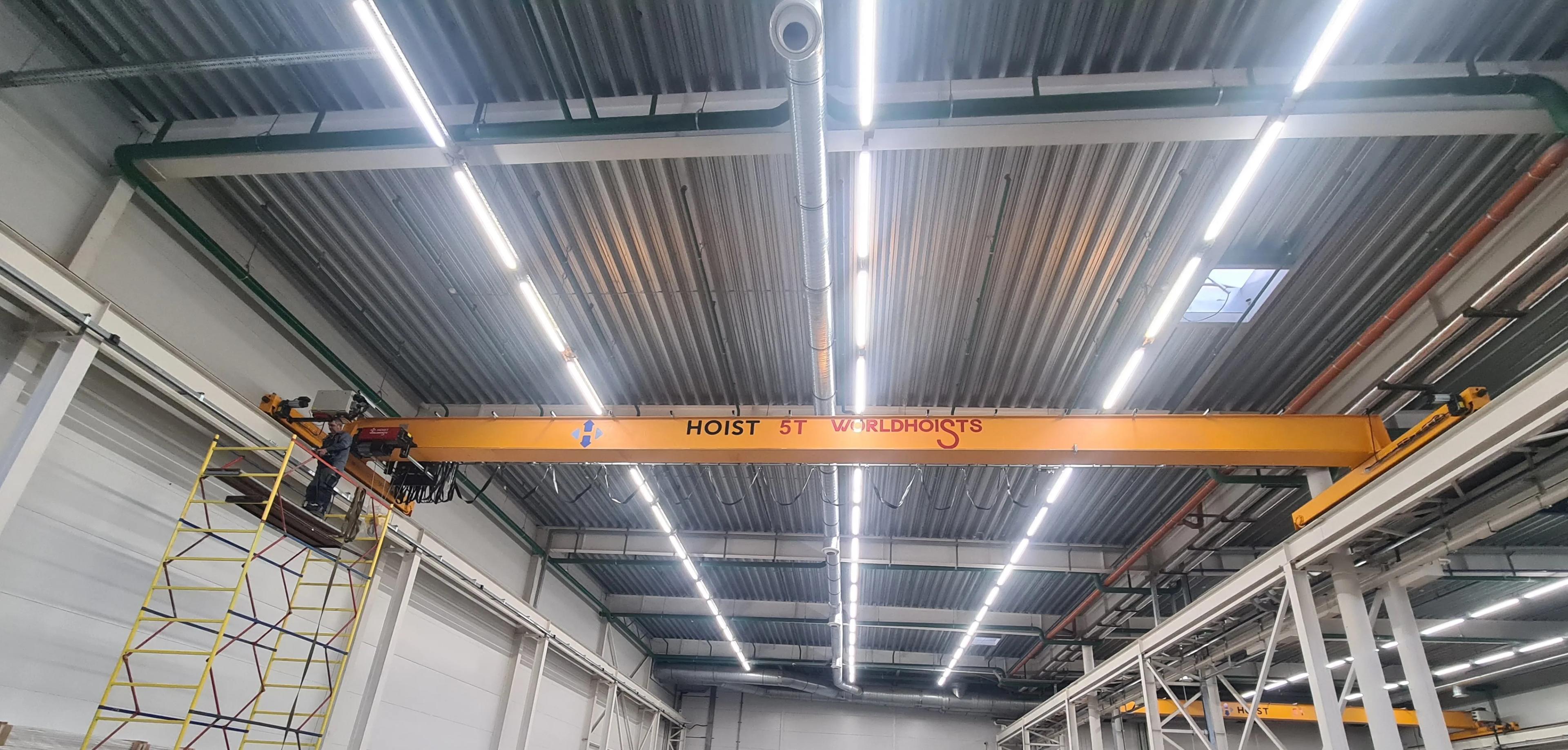 В качестве решения выбран монтаж дополнительного мостового однобалочного крана грузоподъемностью 5 тонн производства WORLDHOISTS на существующие крановые пути.