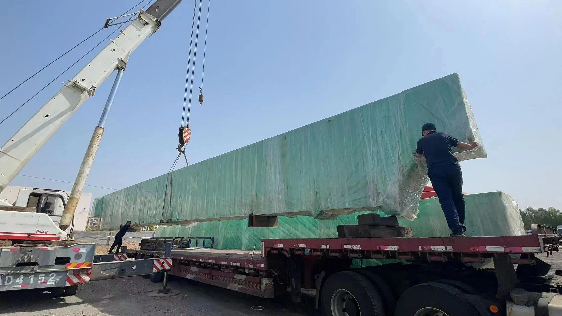 - Весь кран, все пролетные балки были произведены и транспортировались из Китая, с производства WORLDHOISTS, пролетные балки крана цельные, единая часть – никаких фланцевых соединений и сварки при монтаже. Это дополнительно гарантирует надежность крана и увеличенную грузоподъемность.